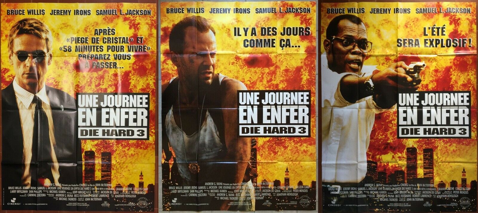 3 Affiches UNE JOURNEE EN ENFER Die Hard 3 BRUCE WILLIS Samuel L. Jackson