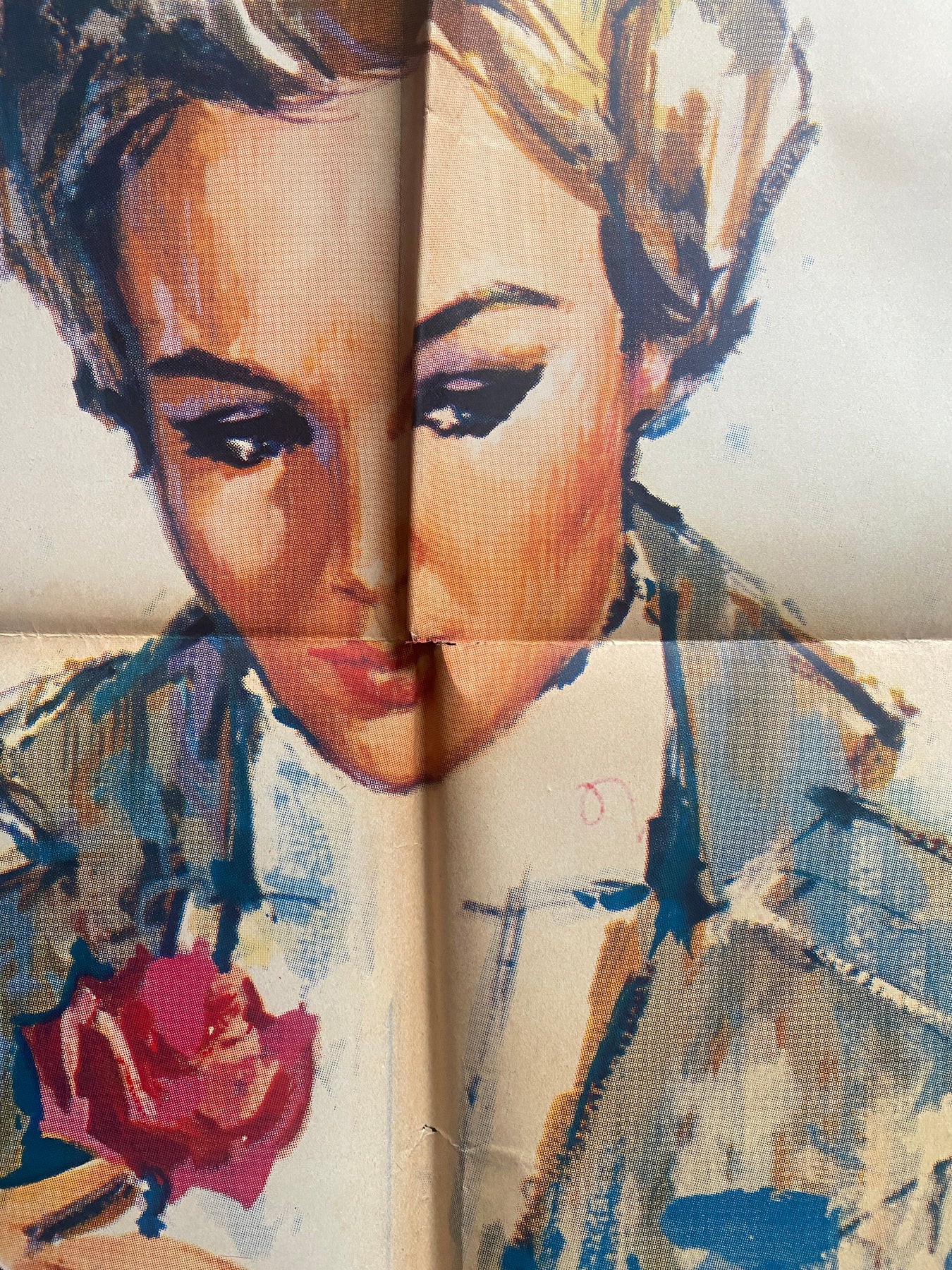 Folded in lesser condition (few tears, one writing at the back very slightly visible (see photo))