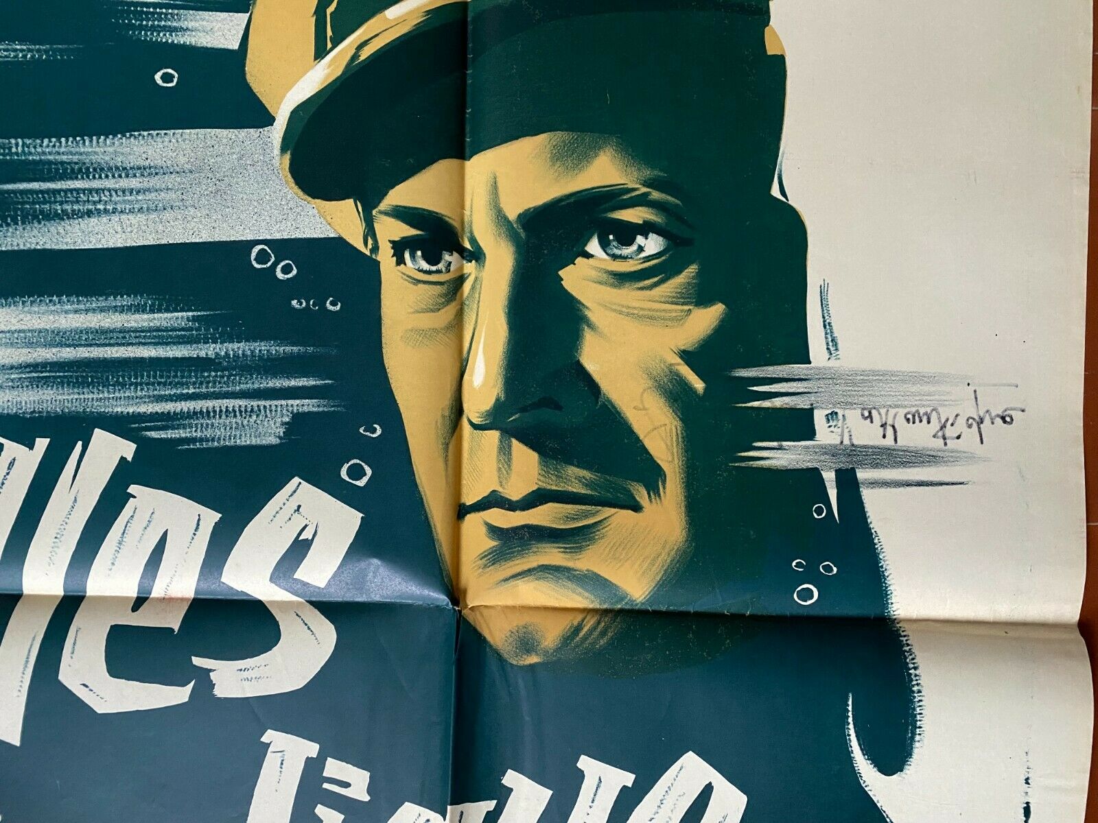 Pliée en bon état (écriture au marqueur au dos visible (voir photo)) / Folded in good condition (marker pen writing at the back visible (see photo))