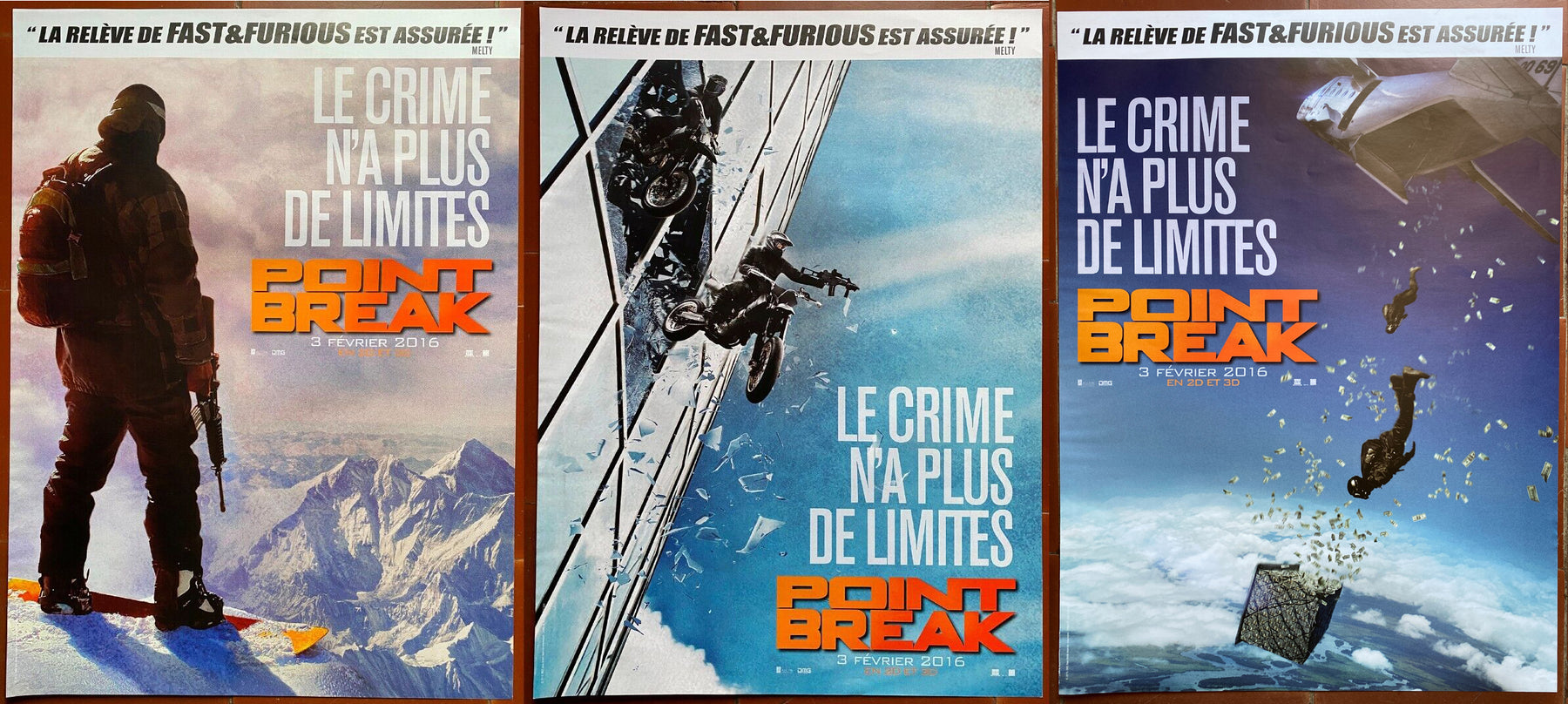 3 Affiches roulées POINT BREAK Ericson Core EDGAR RAMIREZ Luke Bracey MONTAGNE 40x60cm