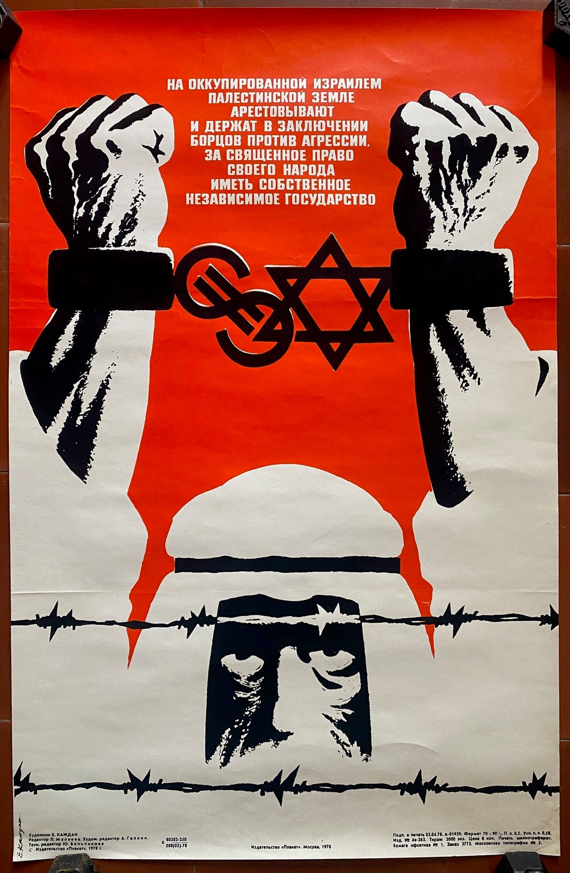 Affiche PROPAGANDE RUSSE Palestine Israel Soviet Propaganda 44x68cm 1978