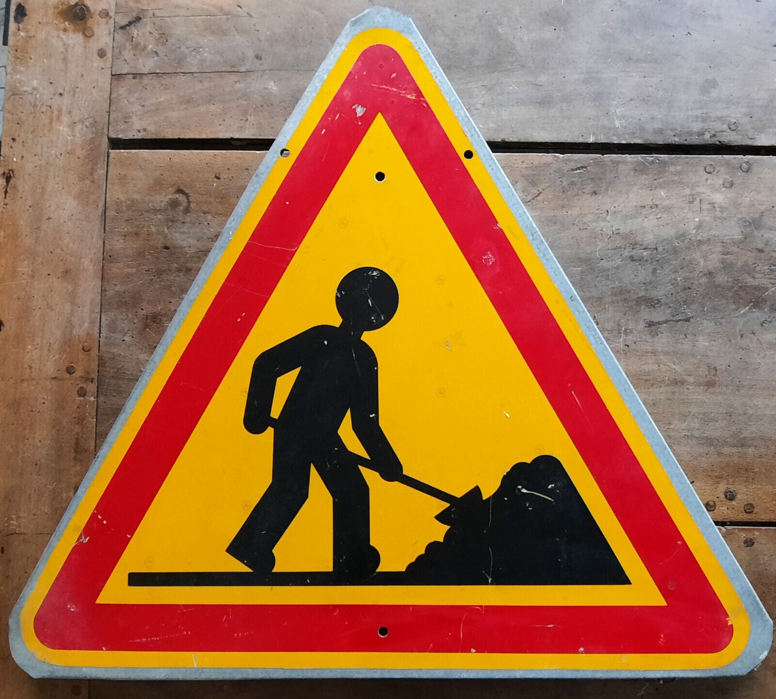 Ancien Panneau de signalisation ATTENTION TRAVAUX automobile route 68cm