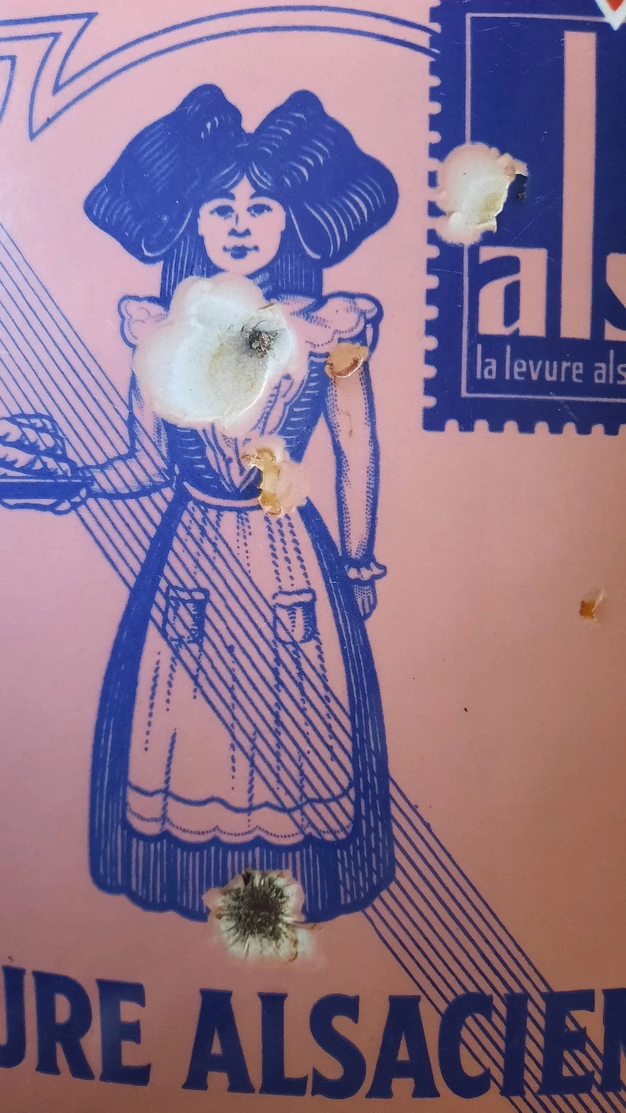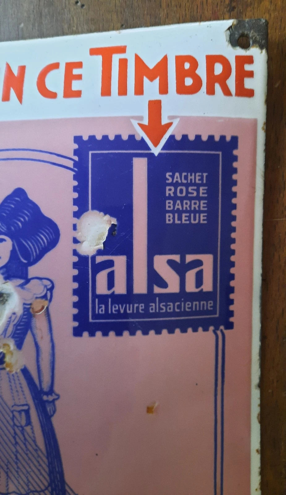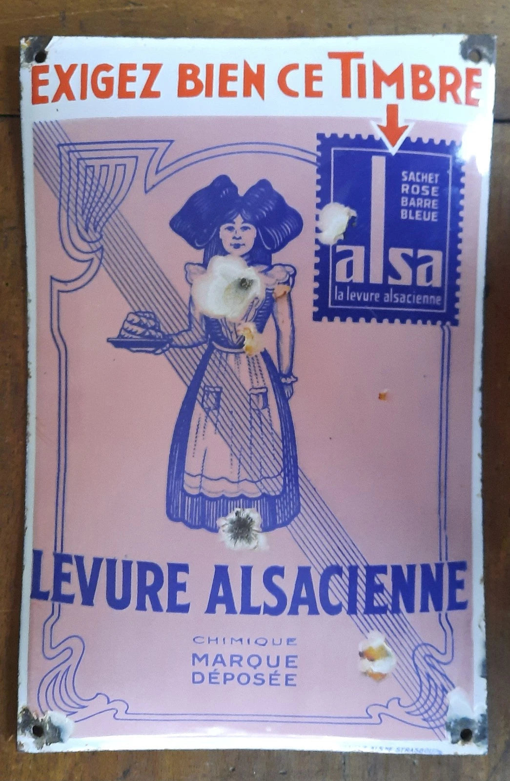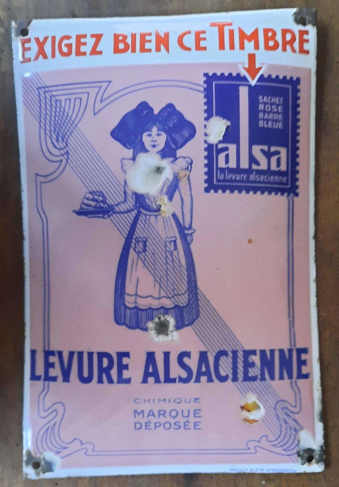 Ancienne plaque émaillée bombée TIMBRE LEVURE ALSACIENNE ALSA EAS 29,5x19cm