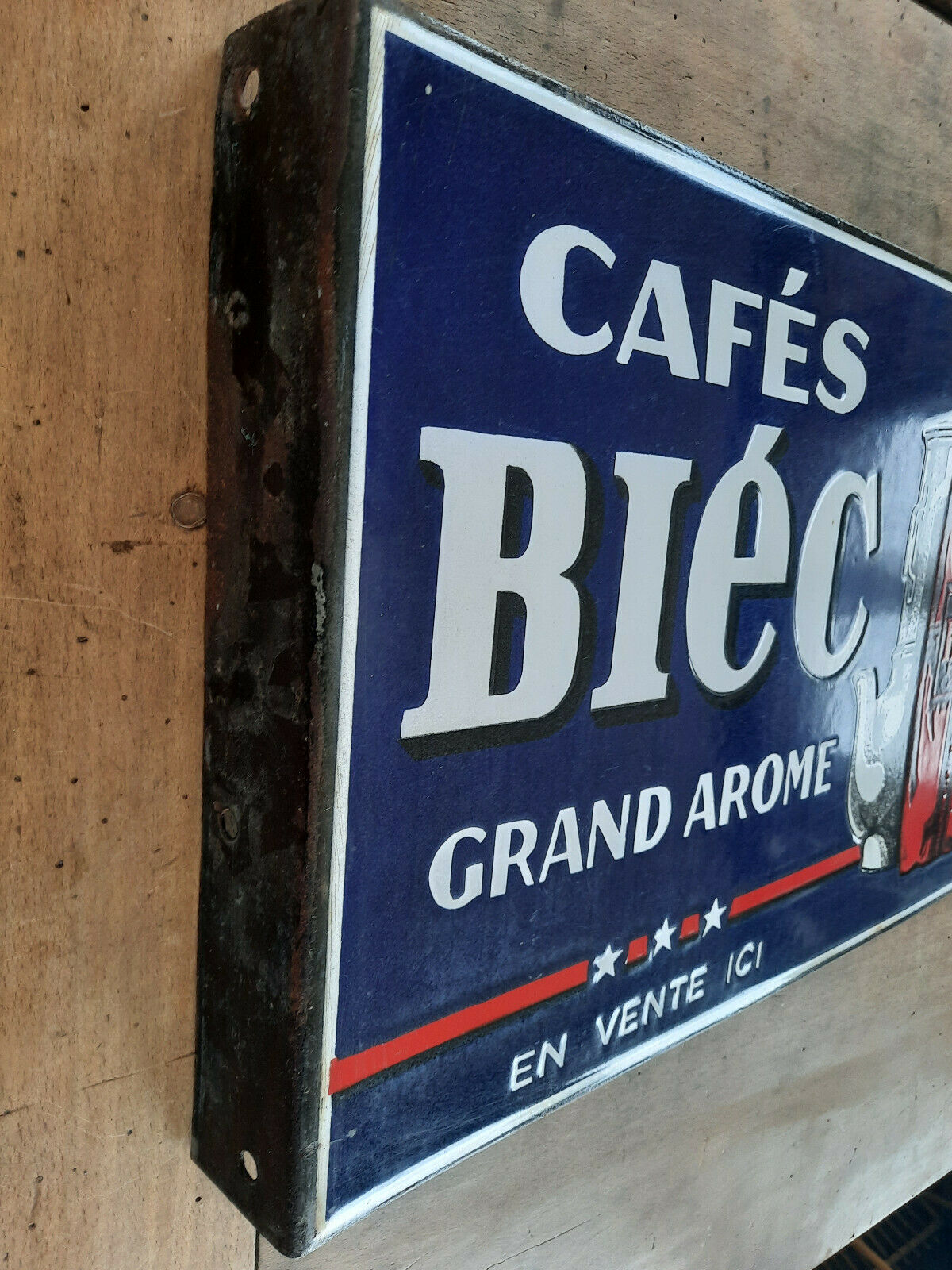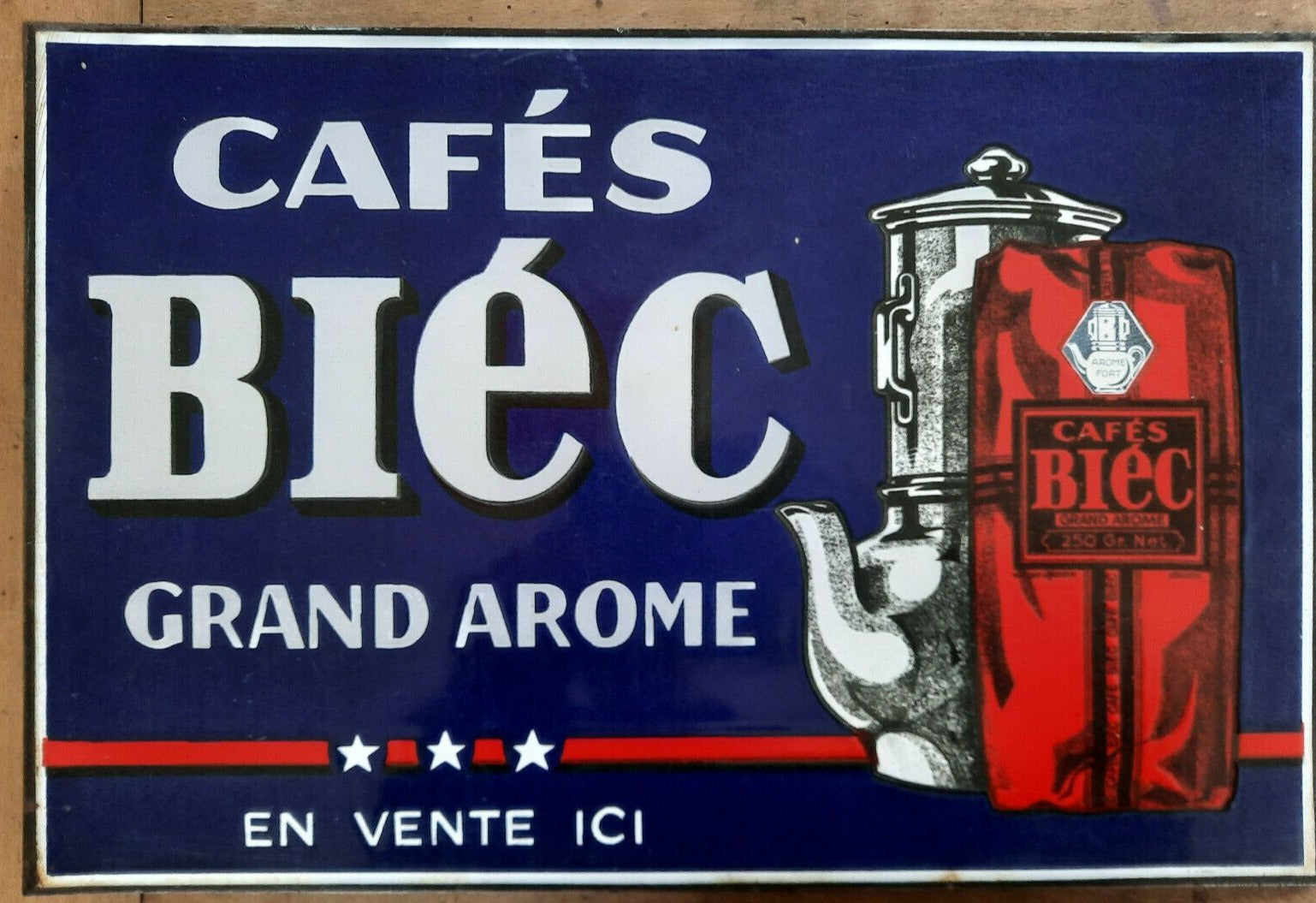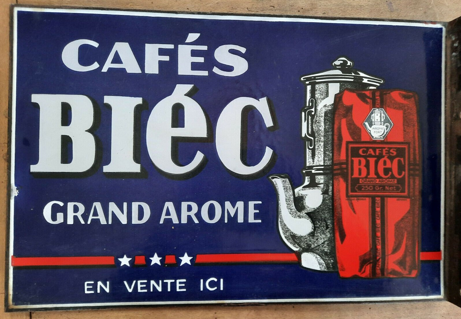 Ancienne Plaque émaillée double face CAFES BIEC Cuisine Bistrot 30x45cm