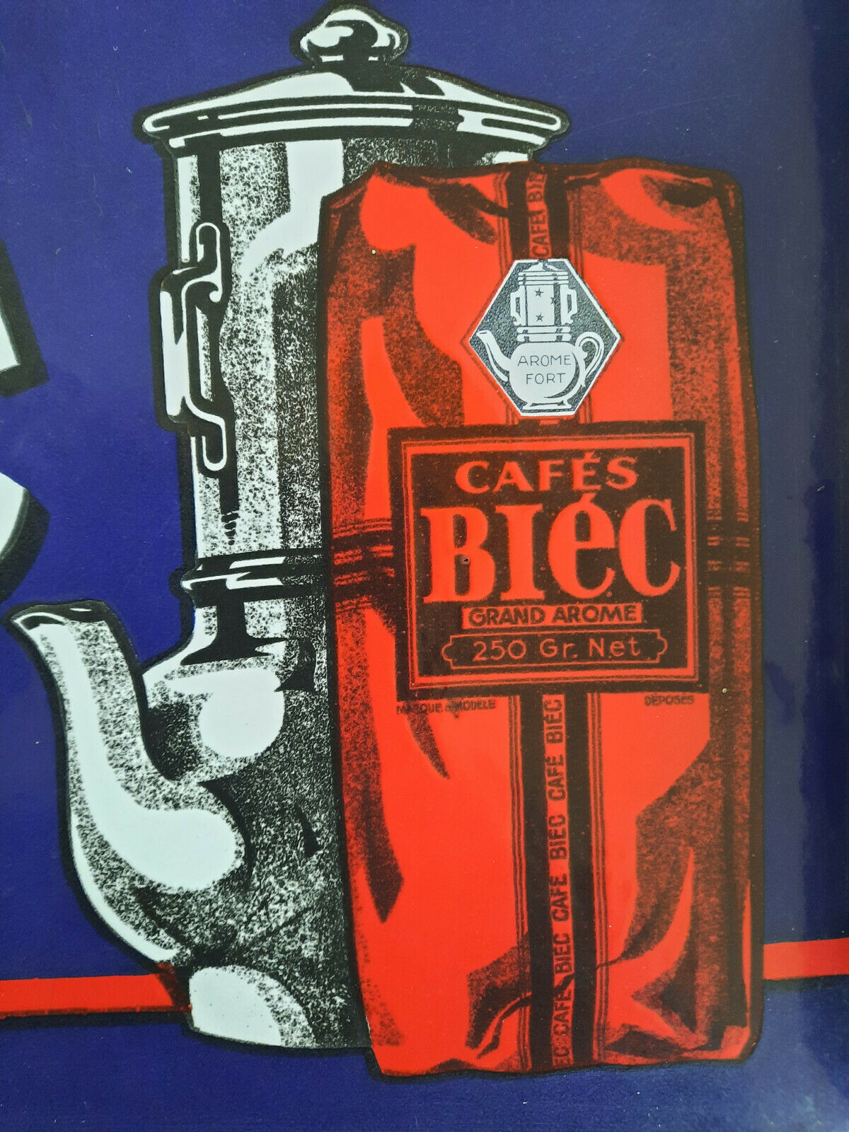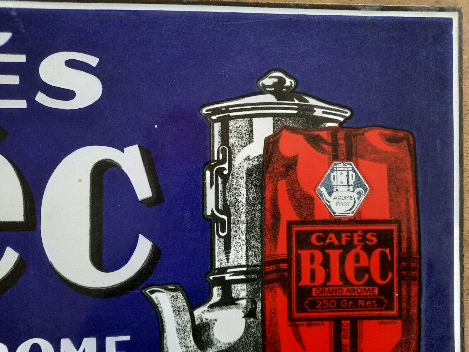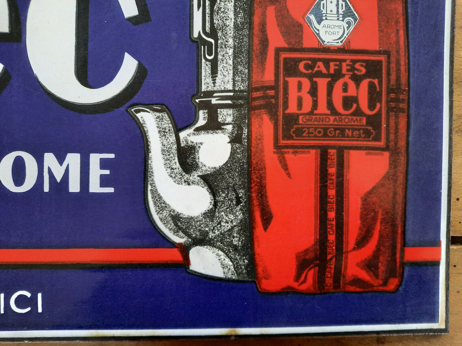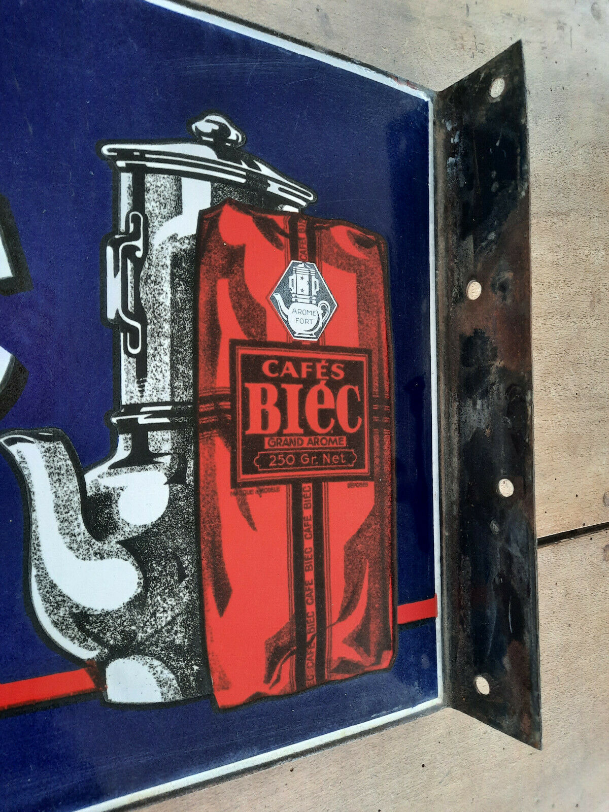 Ancienne Plaque émaillée double face CAFES BIEC Cuisine Bistrot 30x45cm
