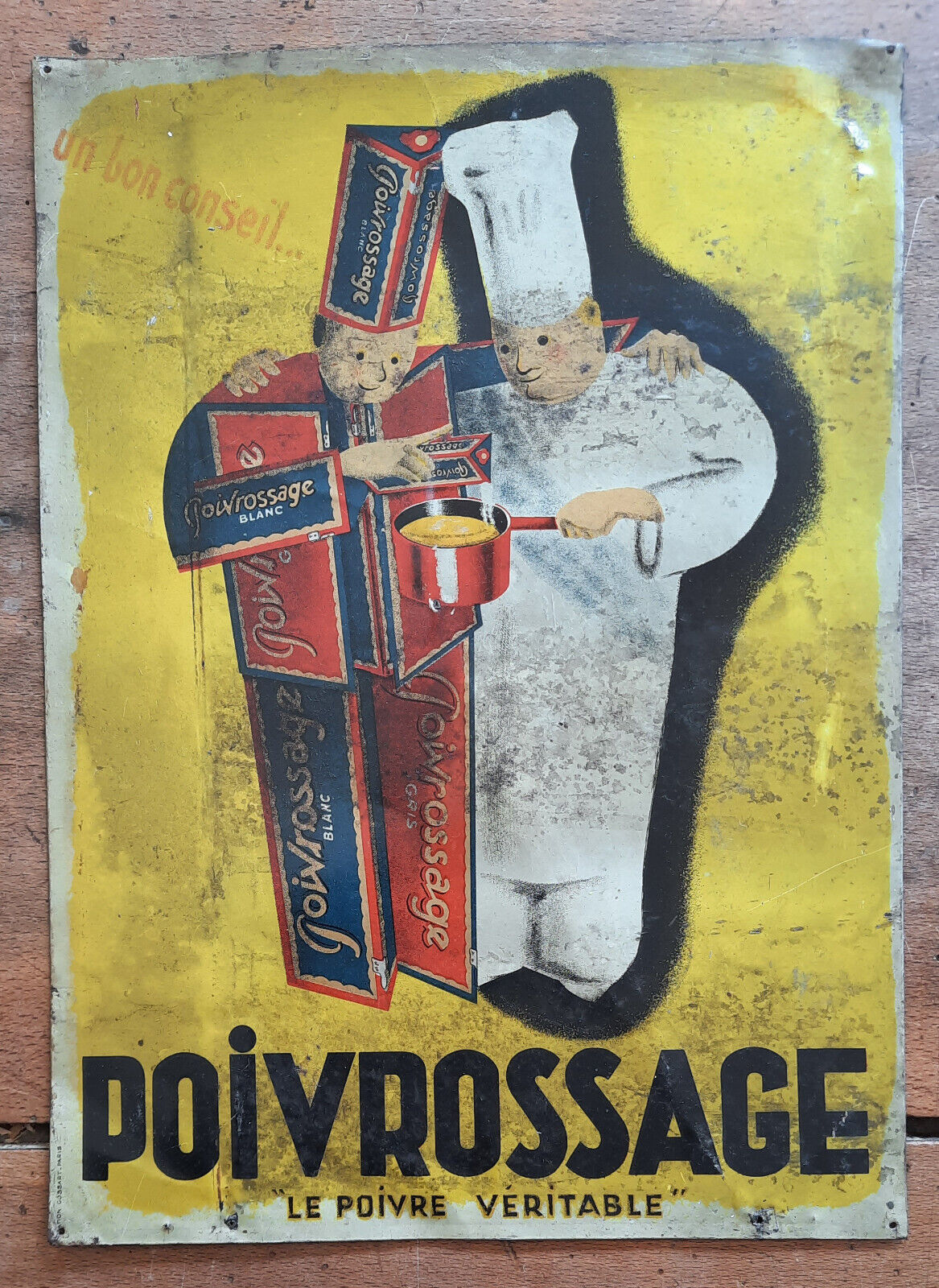 Ancienne Plaque Tole publicitaire POIVROSSAGE déco cuisine 25x34cm