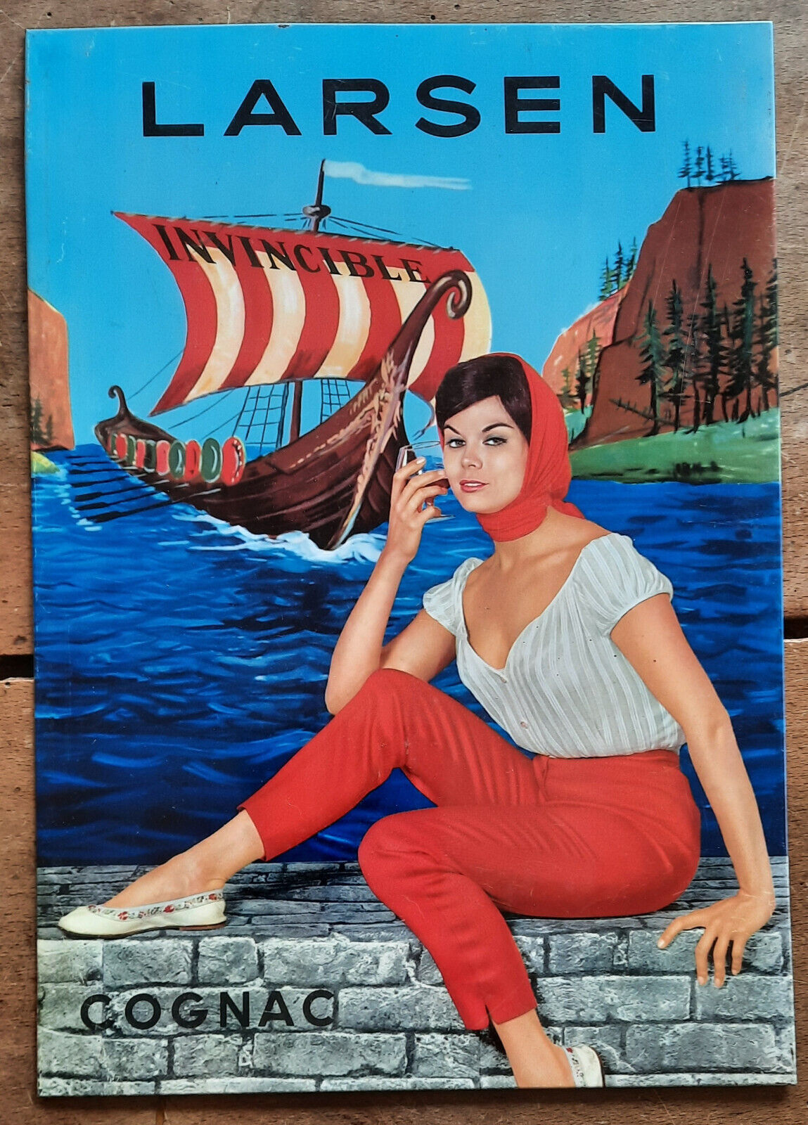 Ancienne tôle publicitaire COGNAC LARSEN déco bistrot café cuisine 24x34cm