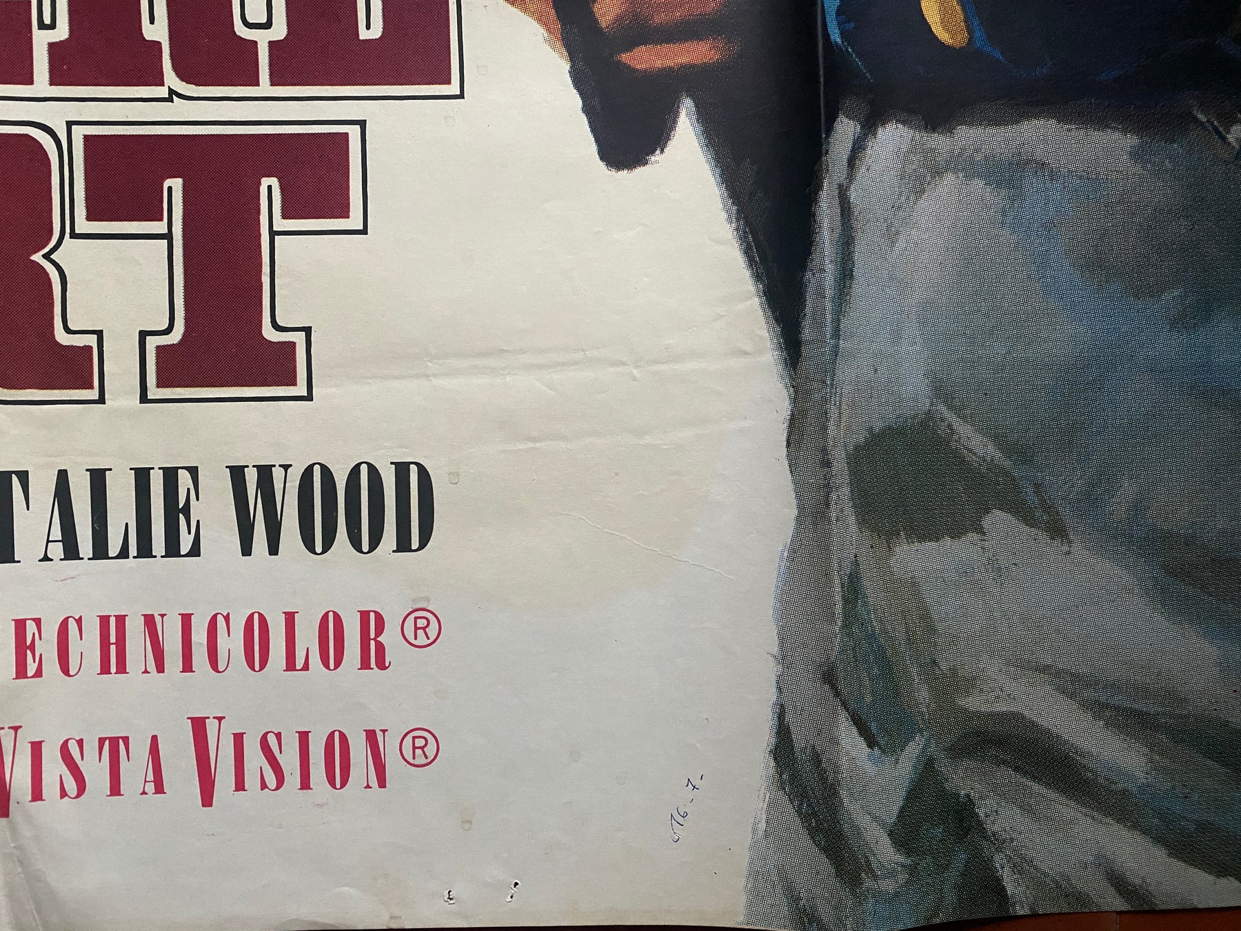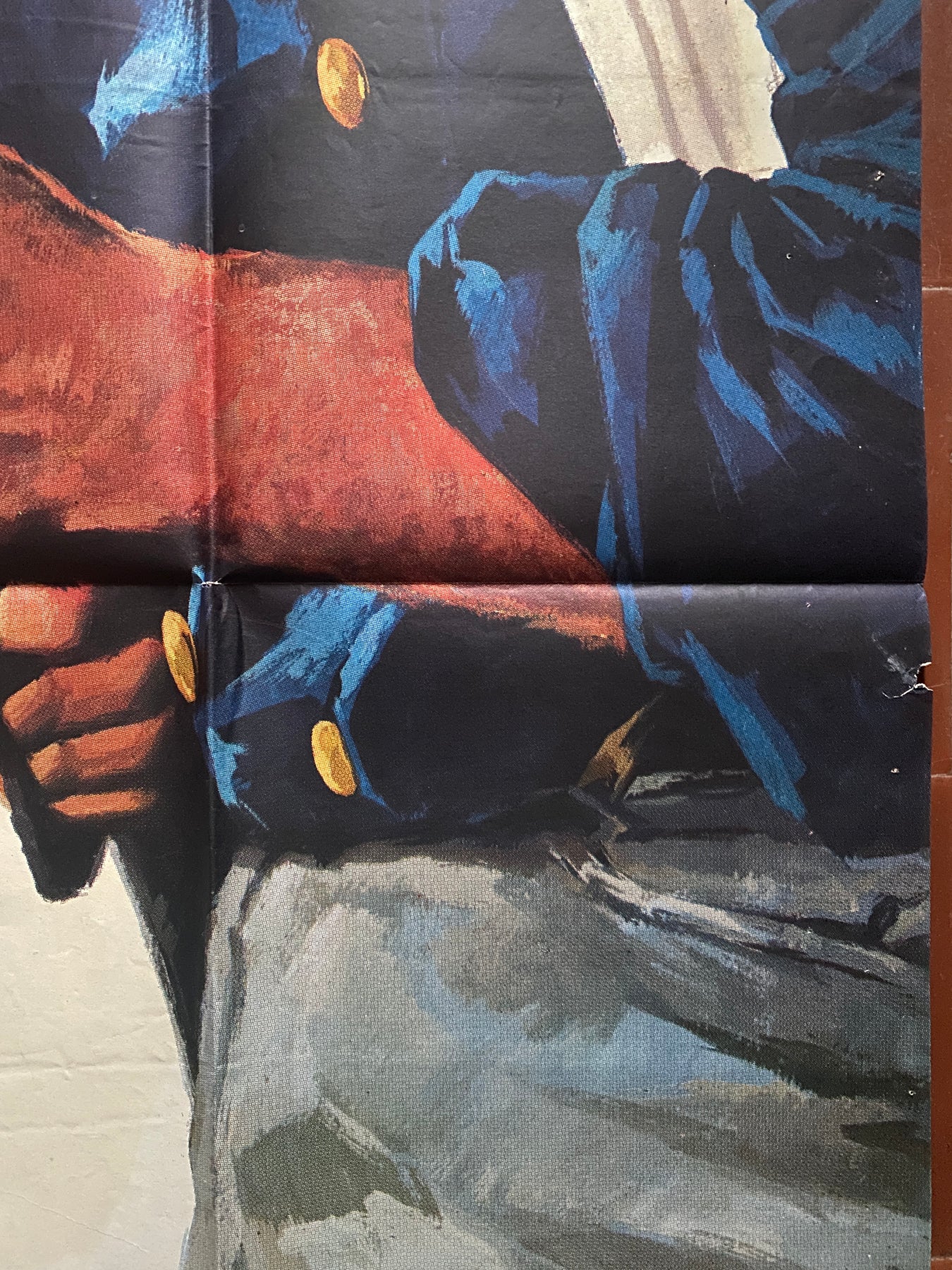 Pliée en état correct (trous de punaises sur les bords, un petit manque bord droit, écriture légèrement visible dans le bas)