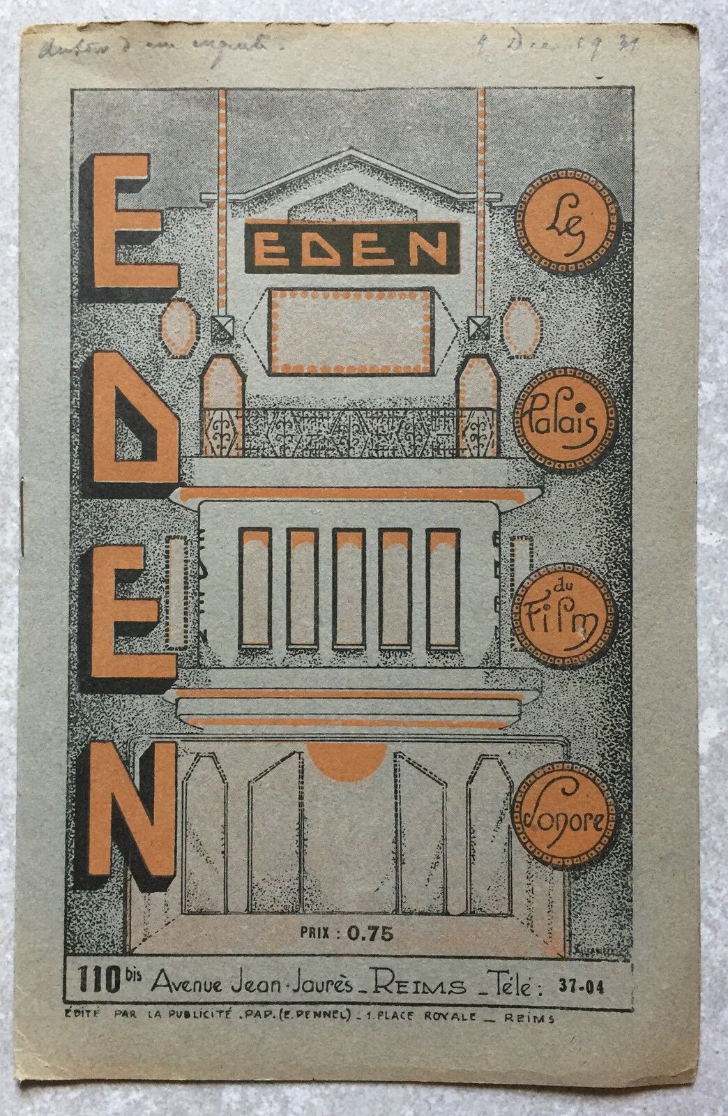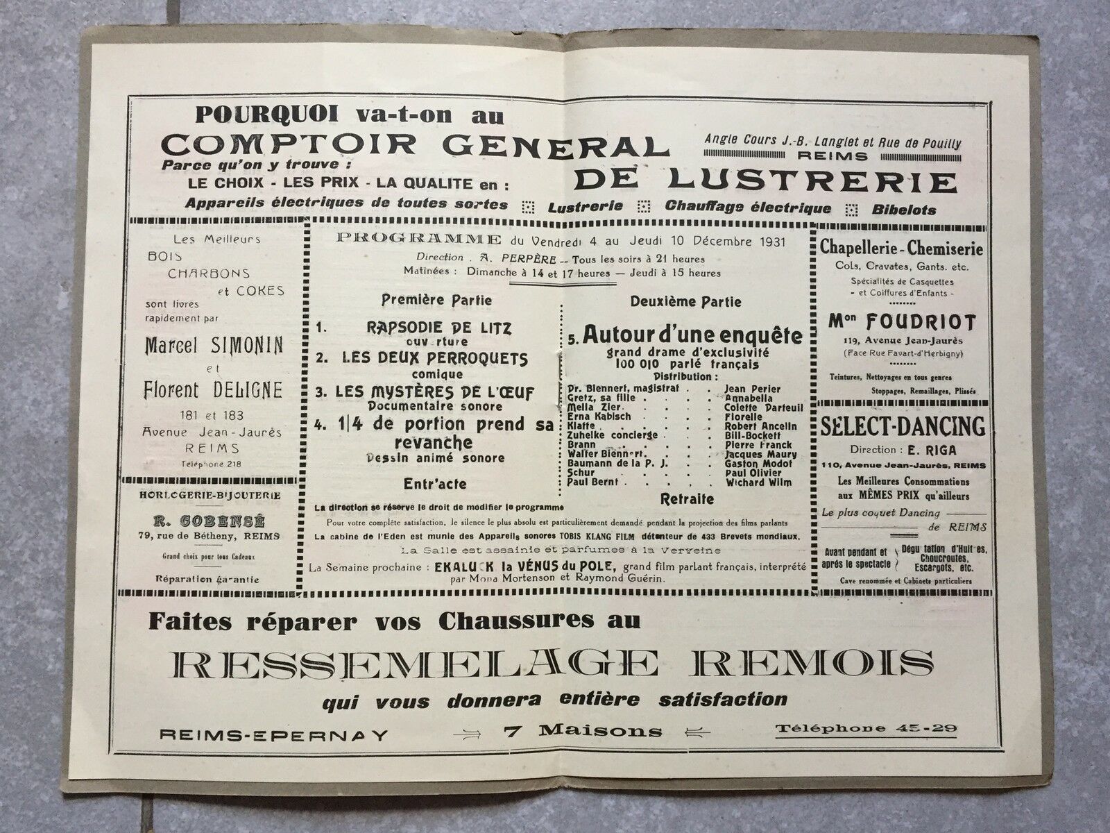 Programme EDEN Reims AUTOUR D'UNE ENQUETE Henri Chomette ANNABELLA 1932