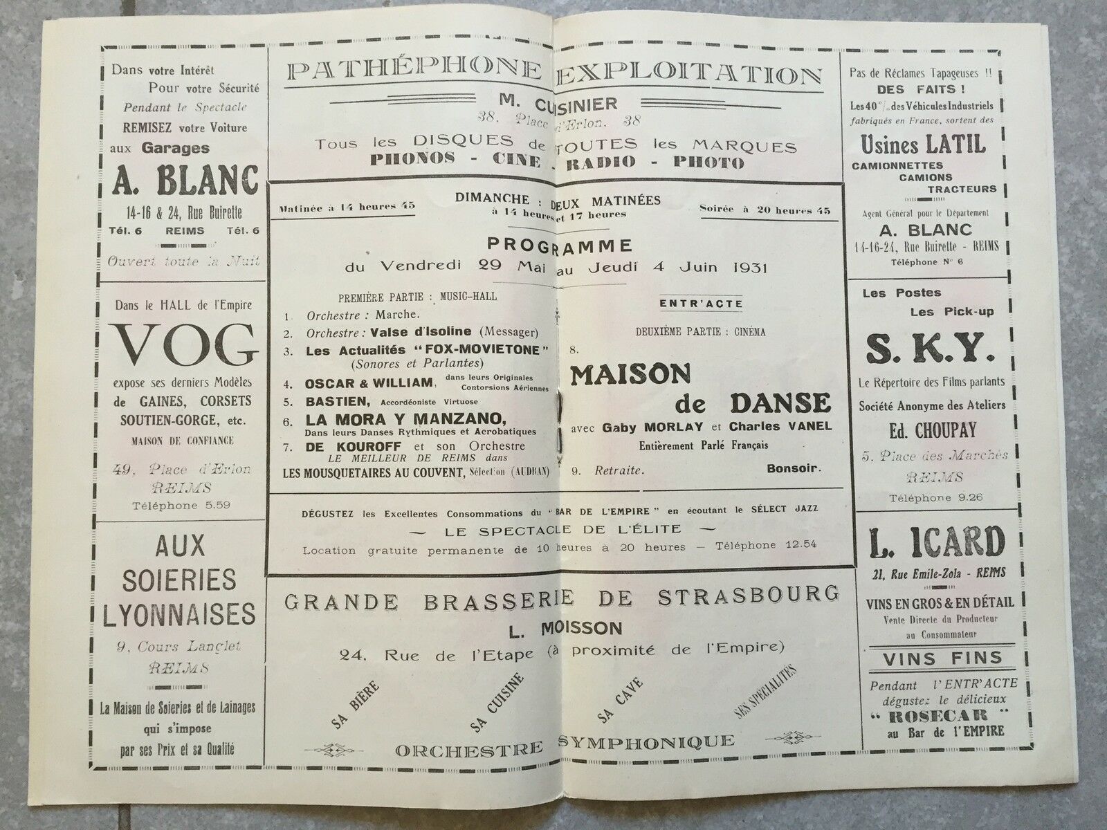 Programme EMPIRE Reims JEAN DE LA LUNE Jean Choux MAISON DE DANSE Tourneur 1931