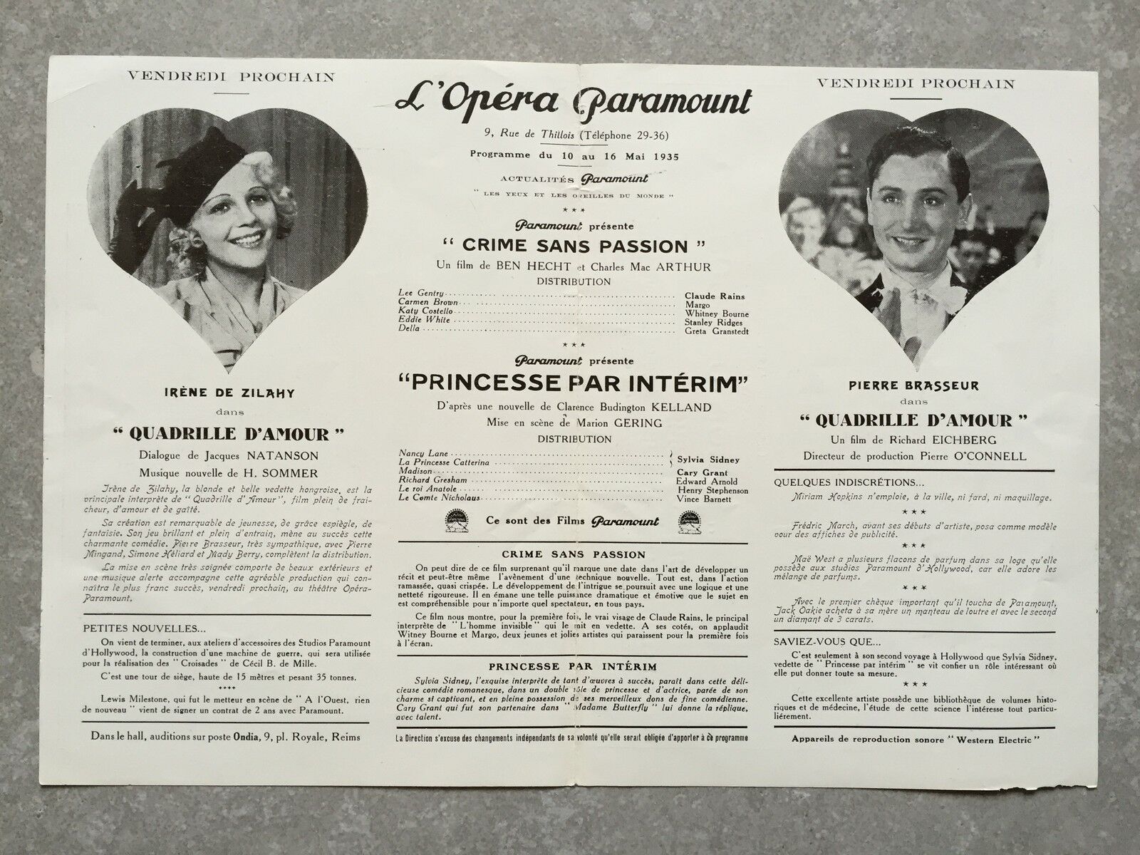 PRINCESS PAR INTERIM (Thirty day princess) de Marion Gering avec Sylvia Sidney, Cary Grant