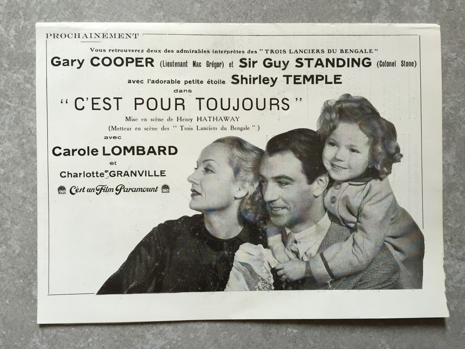 C'EST POUR TOUJOURS (Now and forever) de Henry Hathaway avec Gary Cooper, Shirley Temple